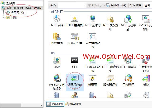 找到中間的IIS部分,打開(kāi)“處理程序映射”。