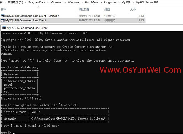 打開(kāi)C:\ProgramData\Microsoft\Windows\Start Menu\Programs\MySQL\MySQL Server 8.0