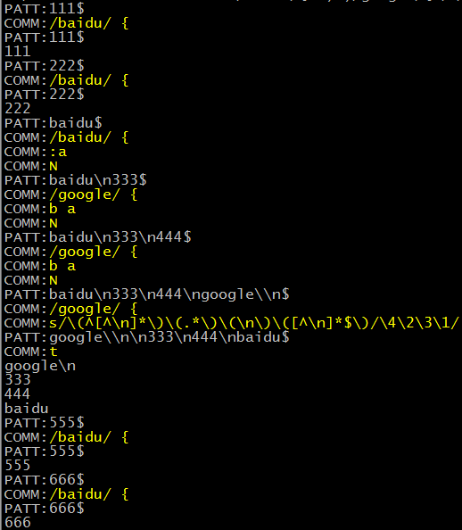 3、如果先出現(xiàn)google后出現(xiàn)baidu,命令需要相應(yīng)的做調(diào)整。
