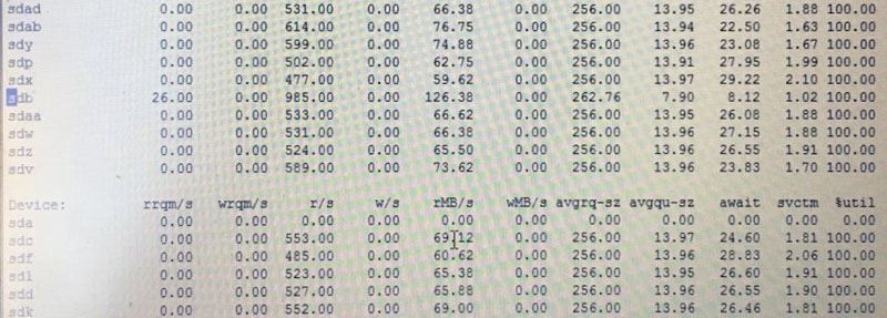 Device:rrqm/swrqm/s r/s w/srsec/swsec/s avgrq-sz avgqu-szawait svctm %util sdg0.00 0.00 133.00 0.00 2128.00 0.00 16.00 1.00 7.507.49 99.60