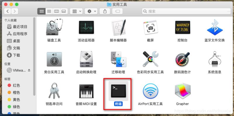 下載完成后,在 Mac 的【訪達(dá)】中,打開 【應(yīng)用程序】——【實(shí)用工具】——【終端】