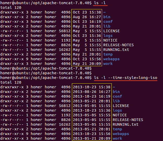 查看文件命令:ls -l 和 ls -l --time-style=long-iso