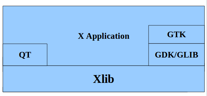 Xlib、QT、GTK直接關(guān)系如下圖: