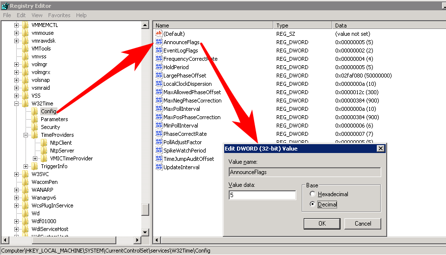 AnnounceFlags設(shè)為5表示以外部時間源為準(zhǔn)進(jìn)行同步,10表示以本機(jī)BIOS時間為準(zhǔn)。