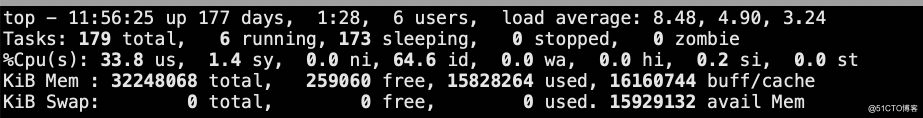 查看服務(wù)器的CPU資源(由于測試服務(wù)器還有其他服務(wù)在使用,CPU資源比極高,正常是25%左右)
