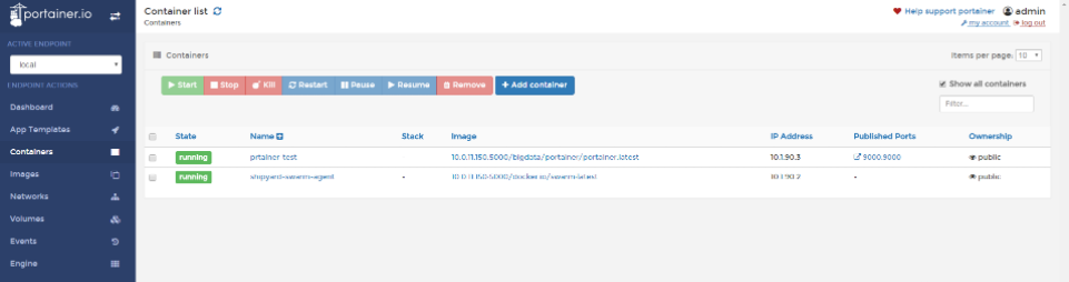 該語(yǔ)句用宿主機(jī)9000端口關(guān)聯(lián)容器中的9000端口,并給容器起名為portainer-test。執(zhí)行完該命令之后,使用該機(jī)器IP:PORT即可訪問(wèn)Portainer。