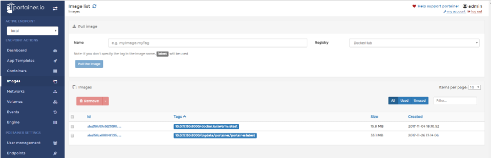 鏡像列表(在鏡像列表可以直接pull一個(gè)鏡像,可以從遠(yuǎn)程pull,也可以從私有庫(kù)中pull。從私有庫(kù)中pull,需要將私有庫(kù)的地址提前進(jìn)行配置,這個(gè)在后面會(huì)說(shuō)):