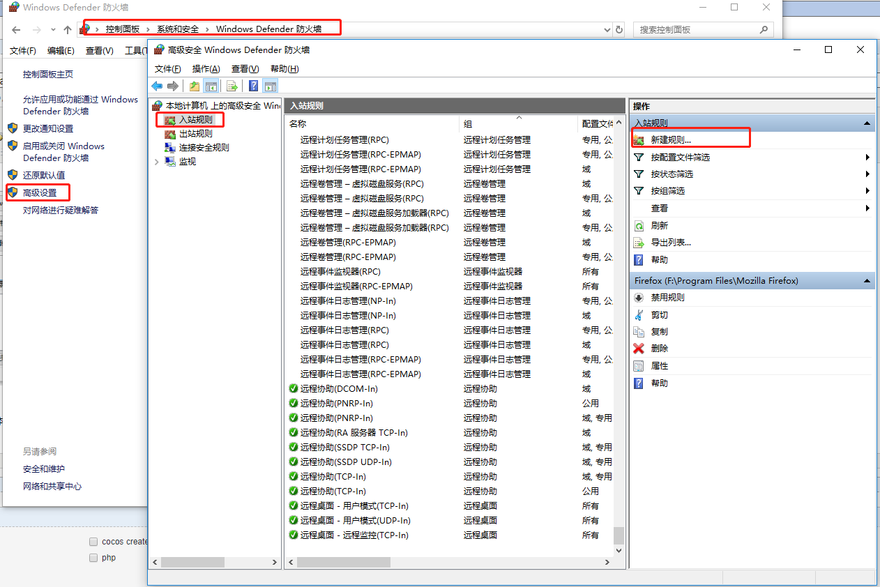 按照上面設置基本沒問題,然后會發(fā)現(xiàn)還是沒拉取到遠程服務器的文件列表。這個時候就需要找到win下防火墻的設置。如下圖