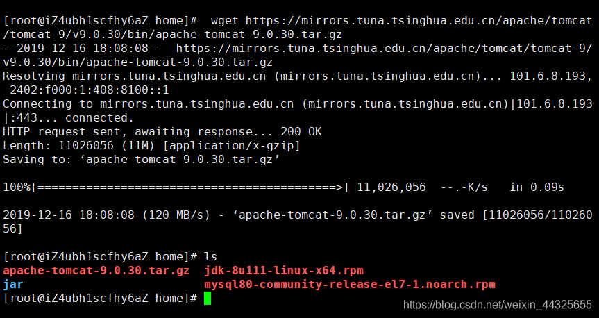 wget https://mirrors.tuna.tsinghua.edu.cn/apache/tomcat/tomcat-9/v9.0.30/bin/apache-tomcat-9.0.30.tar.gz