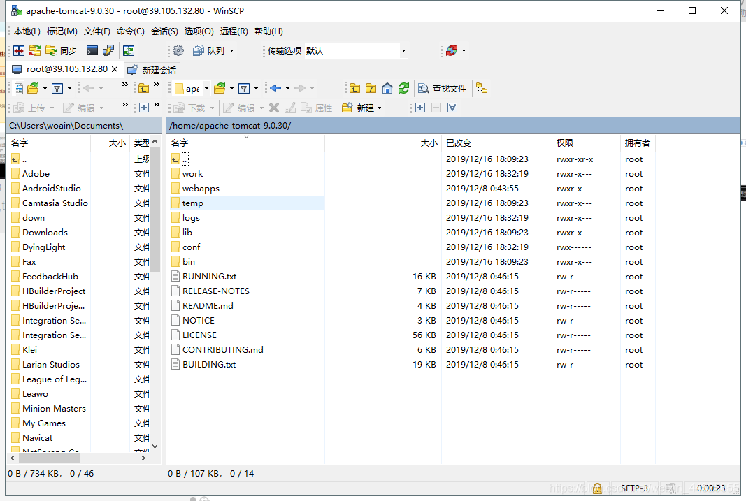 通過WinSCP工具訪問我們的Tomcat目錄找到webapps文件夾