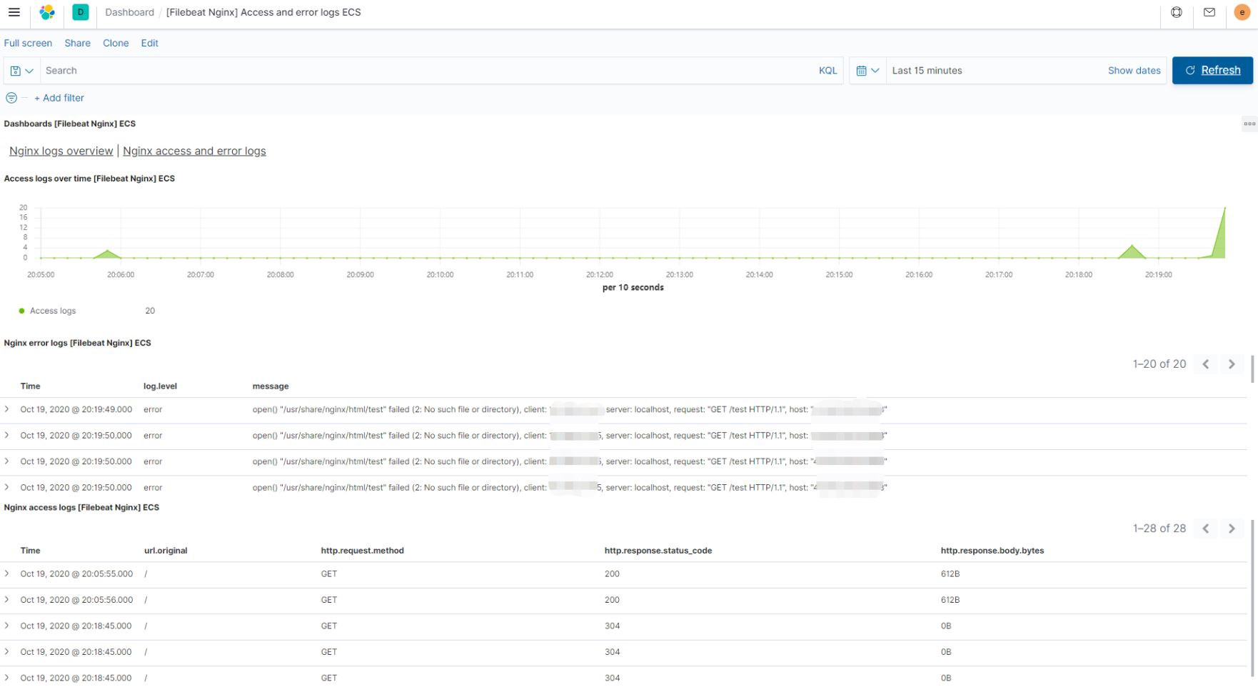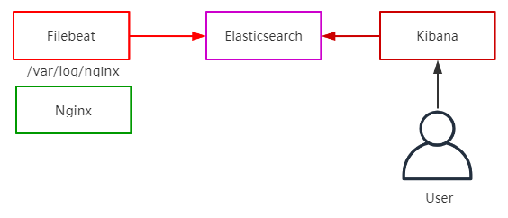 涉及到 Elastic Stack 中 Filebeat 是用于采集 Nginx 相關(guān)的日志, Elasticsearch 是用于對(duì)于數(shù)據(jù)落地存儲(chǔ)和搜索的引擎, Kibana 是用于對(duì)數(shù)據(jù)可視化的工具。
