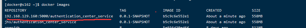 使用命令$ mvn clean package docker:build -Dmaven.test.skip=true構(gòu)建鏡像,在docker服務(wù)器上查看鏡像是否上傳成功: