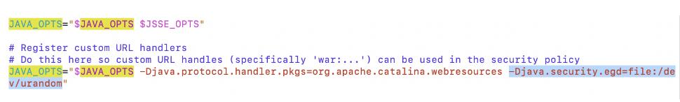 所以我們強制Tomcat使用/dev/urandom而不是/dev/random來產(chǎn)生隨機數(shù),速度就會大幅提升——由好幾分鐘到只有幾秒鐘。