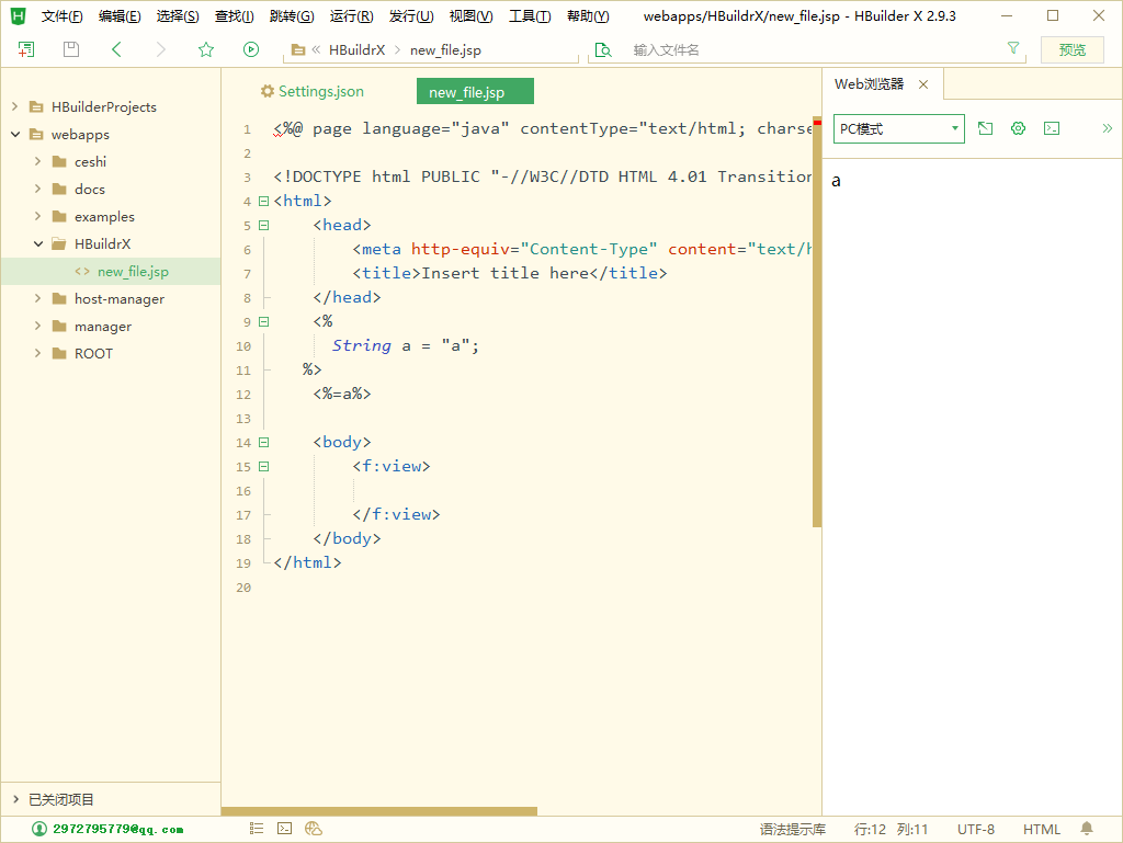 二、第二種方法,運(yùn)行項(xiàng)目后查看,可同時(shí)運(yùn)行項(xiàng)目,用HBuilderX查看jsp
