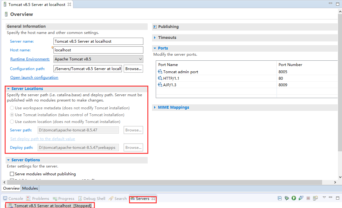 - 原因是我們剛才在eclipse中設(shè)置的Server locations路徑為: Use workspace metadata,你在eclipse中啟動(dòng)的tomcat并部署項(xiàng)目的時(shí)候,其實(shí)是Eclipse調(diào)用了tomcat核心的組件,內(nèi)置到eclipse中,啟動(dòng)和部署的時(shí)候跟真正的tomcat毫無關(guān)系,因此當(dāng)你在瀏覽器中輸入http://localhost:8080/ 顯示沒有啟動(dòng),但是輸入http://localhost:8080/項(xiàng)目名 之后, 直接進(jìn)入了eclipse的內(nèi)置的tomcat,因此能預(yù)覽。