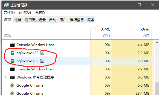 在任務管理器上就可以看到nginx已經(jīng)啟動了