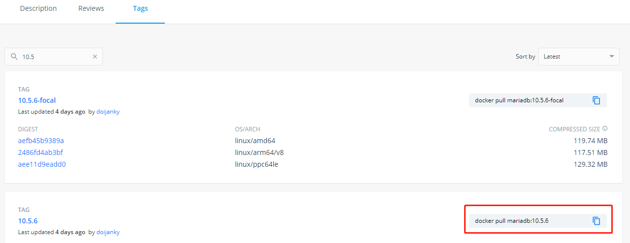 一、安裝通過(guò)dockerhub搜索要安裝的mariadb版本。執(zhí)行docker pull將鏡像拉取到本地。