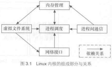 Linux內(nèi)核主要有進程調(diào)度、內(nèi)存管理、虛擬文件系統(tǒng)、網(wǎng)絡(luò)接口和進程間通信等5個子系統(tǒng)組成,如下圖: