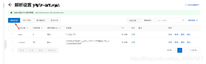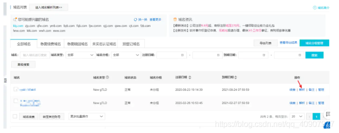 下面就是配置域名解析了,來到域名控制臺,點(diǎn)擊解析