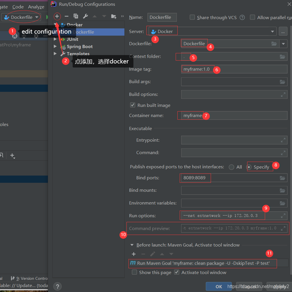 11、配置運(yùn)行docker run 之前需要重新編譯打包項(xiàng)目: