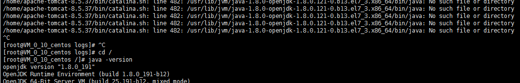/home/apache-tomcat-8.5.37/bin/catalina.sh: line 482: /usr/lib/jvm/java-1.8.0-openjdk-1.8.0.121-0.b13.el7_3.x86_64/bin/java: No such file or directory