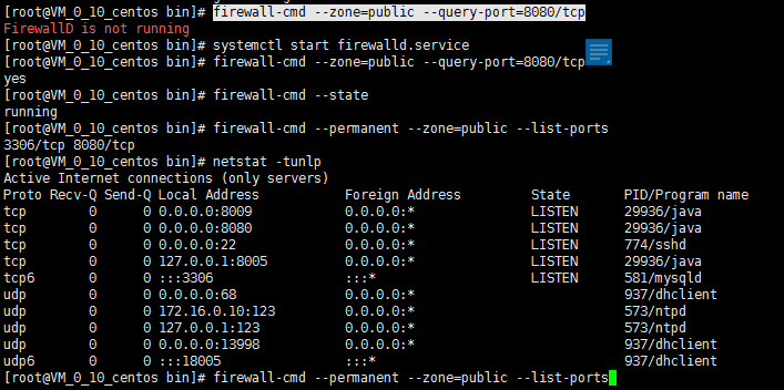 firewall-cmd --permanent --zone=public --add-port=8080/tcp #永久的添加該端口。去掉--permanent則表示臨時(shí)。