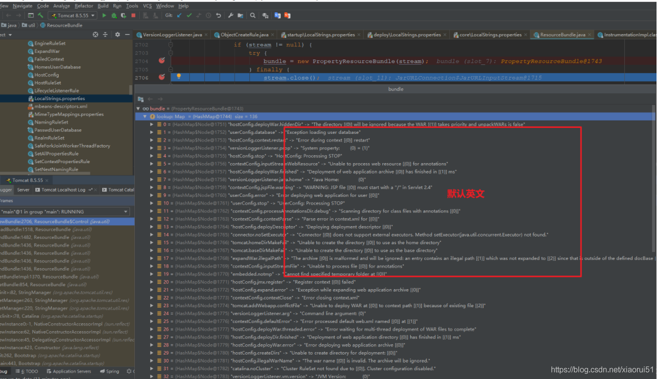使用idea開發(fā)工具調(diào)試代碼的時候,如果是java的web項目,使用的是tomcat作為web容器,打斷點debug調(diào)試跟蹤,當(dāng)跟蹤到org.apache.catalina包下的時候,則無法進入,這是因為idea運行的tomcat是通過插件的方式集成的,tomcat里面的lib包不再項目的依賴路徑中,所以不能跟蹤進去