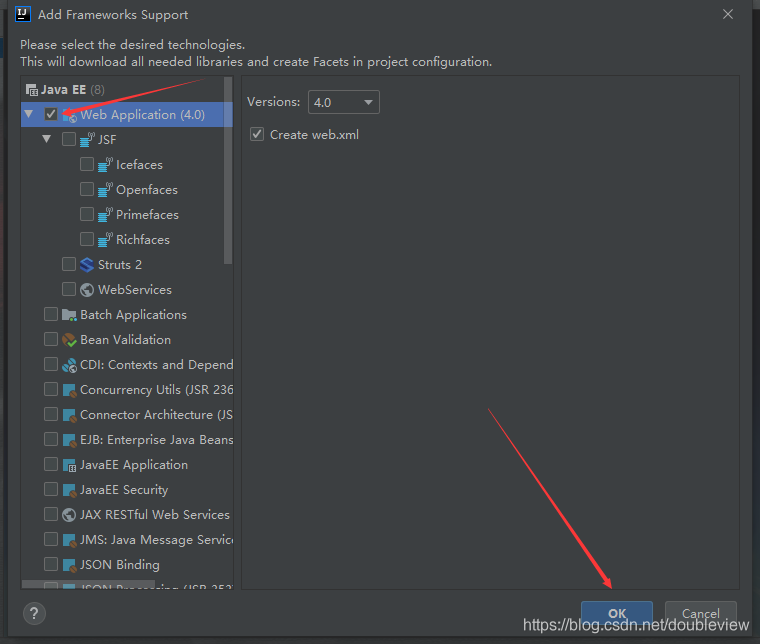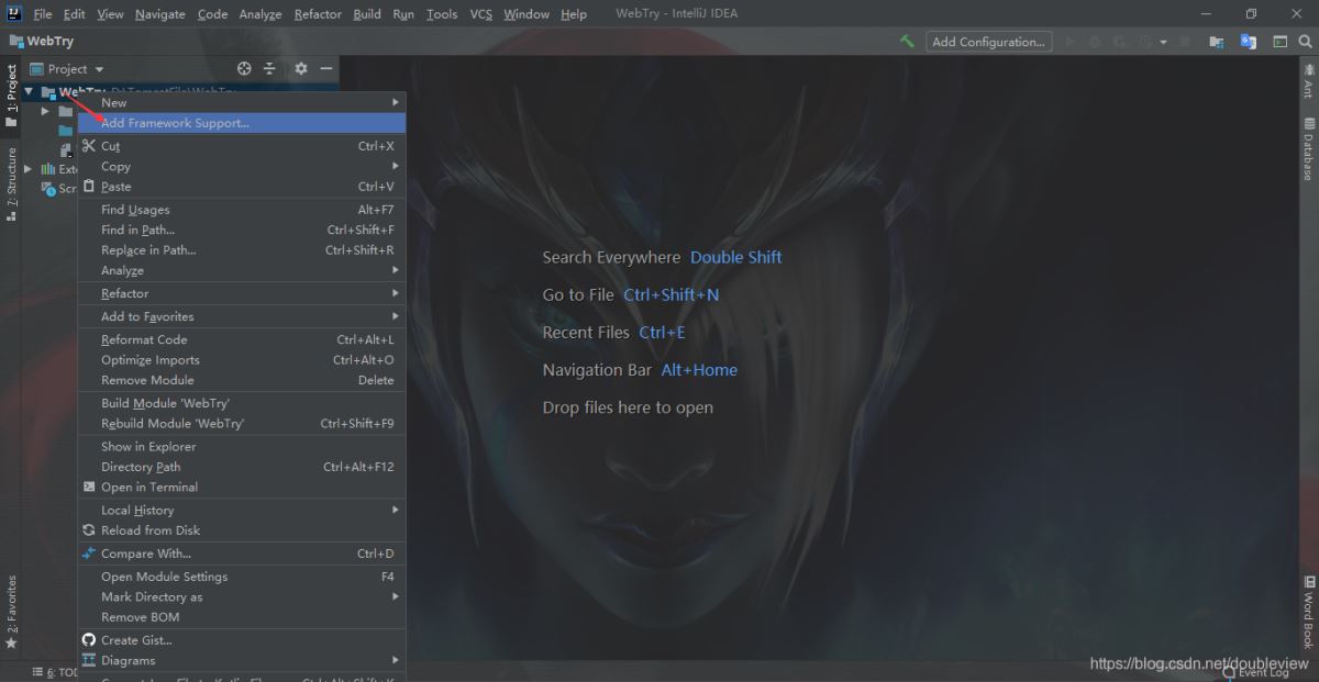 第二步,創(chuàng)建web項目。右鍵項目名–>Add Frameworks Support
