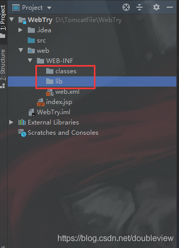 然后在web/WEB_INF 目錄下創(chuàng)建兩個文件夾:classes和lib