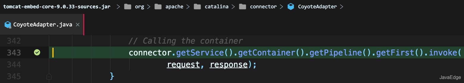 整個調(diào)用過程由連接器中的Adapter觸發(fā)的,它會調(diào)用Engine的第一個Valve: