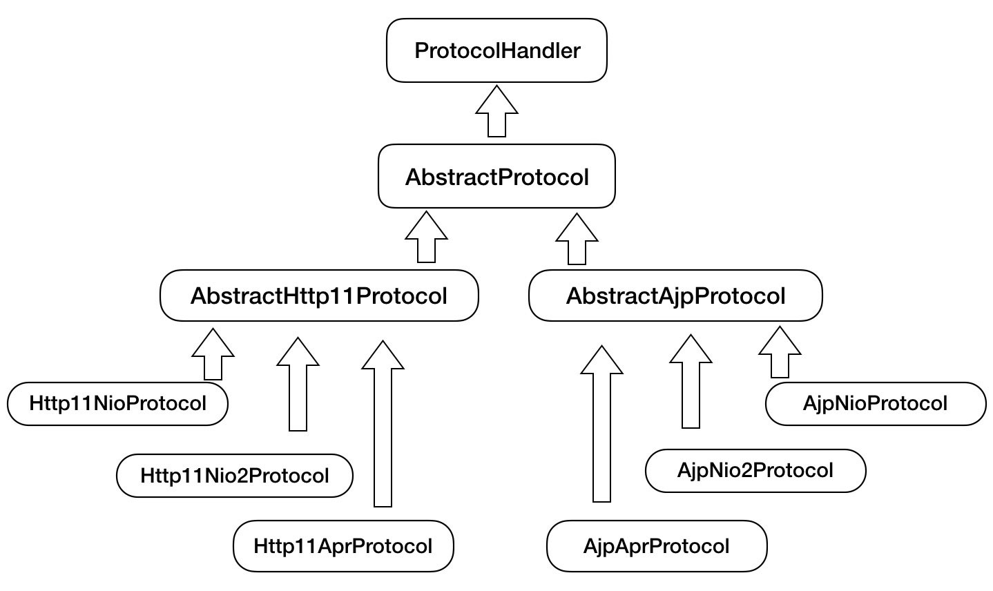 因此 Tomcat 設(shè)計(jì)了一系列抽象基類來封裝這些穩(wěn)定的部分,抽象基類 AbstractProtocol實(shí)現(xiàn)了 ProtocolHandler接口。每一種應(yīng)用層協(xié)議有自己的抽象基類,比如 AbstractAjpProtocol和 AbstractHttp11Protocol,具體協(xié)議的實(shí)現(xiàn)類擴(kuò)展了協(xié)議層抽象基類。