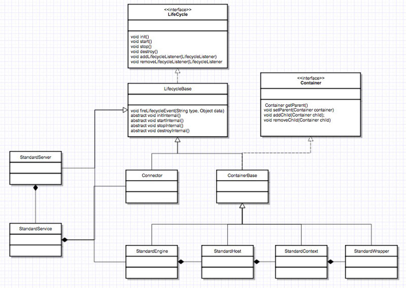 你可能會(huì)問,為啥要設(shè)計(jì)這么多層次的容器,這不是增加復(fù)雜度么?其實(shí)這背后的考慮是,Tomcat 通過一種分層的架構(gòu),使得 Servlet 容器具有很好的靈活性。因?yàn)檫@里正好符合一個(gè) Host 多個(gè) Context, 一個(gè) Context 也包含多個(gè) Servlet,而每個(gè)組件都需要統(tǒng)一生命周期管理,所以組合模式設(shè)計(jì)這些容器
