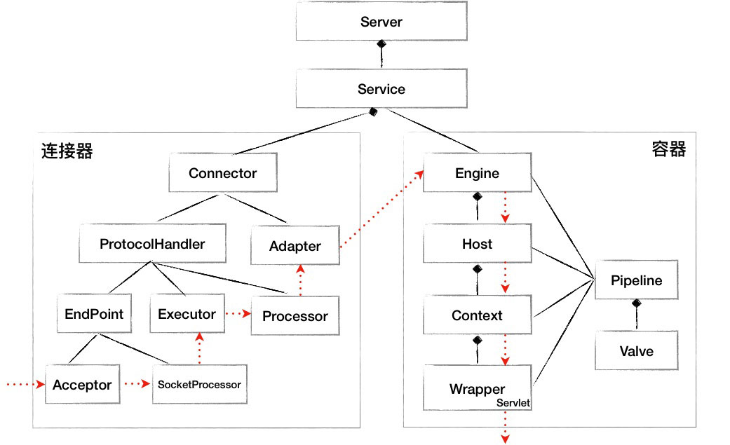 Socket連接,負(fù)責(zé)網(wǎng)絡(luò)字節(jié)流與Request和Response對(duì)象的轉(zhuǎn)化。 - 加載并管理