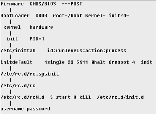 4)init進(jìn)程,主要是讀取/etc/inittab文件,執(zhí)行缺省運(yùn)行級別,從而繼續(xù)引導(dǎo)。需要注意的是init京城的PID恒為1,是所有進(jìn)程的父進(jìn)程,而init進(jìn)程的負(fù)景程是0,為內(nèi)核調(diào)度器Kernel scheduler。