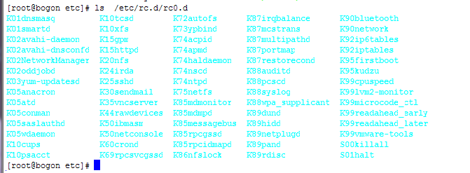 加載完基礎(chǔ)服務(wù)后,就要根據(jù)不同的運(yùn)行級別去啟動相對應(yīng)的下的目錄,它的工作原理是先去判斷系統(tǒng)的默認(rèn)運(yùn)行級別即第6步中的東西,然后再執(zhí)行相應(yīng)的rcN.d目錄下的服務(wù)啟動腳本如圖