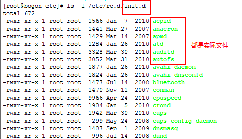 在這一步里,需要說明一下/etc/rc.d/init.d這個目錄,這個目錄里放的腳本是真正的腳本,而rcN.d里放置的都是init.d目錄里的軟連接,也就是說所有rcN.d里的文件最終都需要來init.d里找真正的腳本