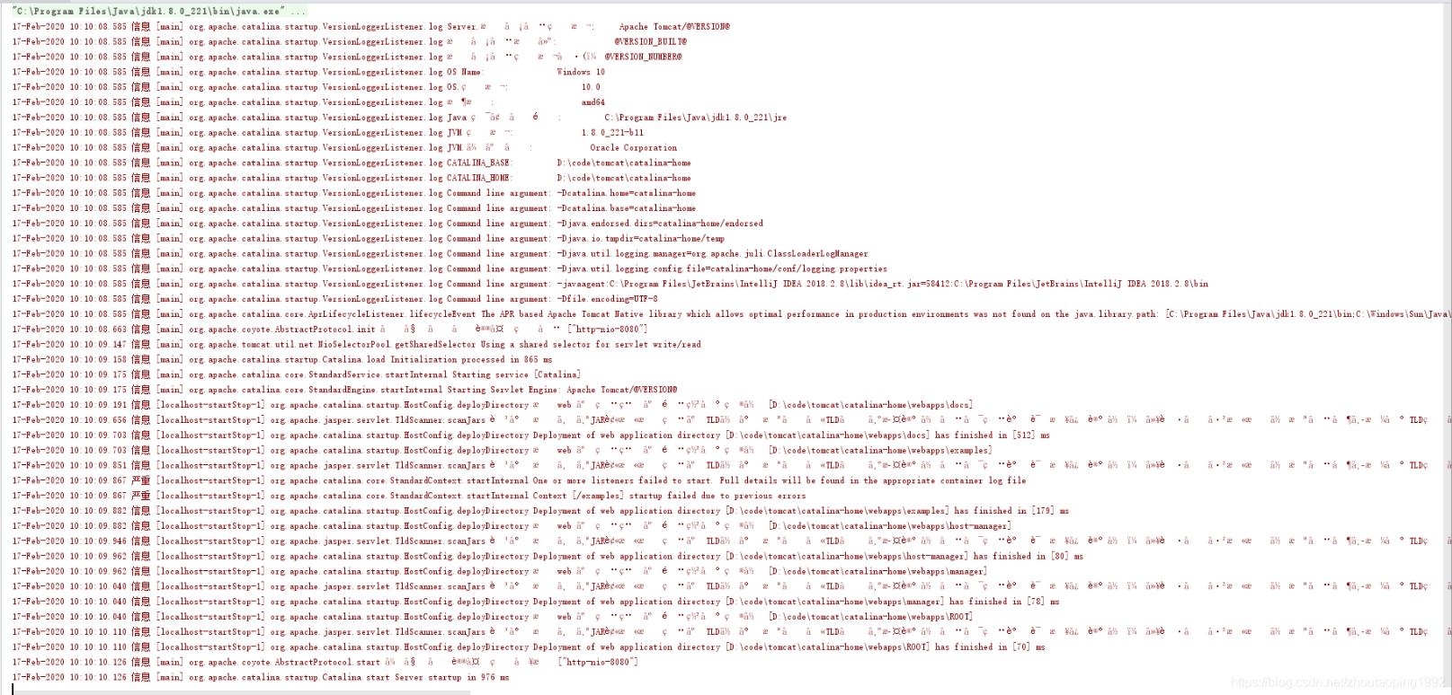 今天準(zhǔn)備學(xué)習(xí)下tomcat源碼,于是從官網(wǎng)下載了tomcat的源碼,導(dǎo)入到IDEA中,使用maven工具build完項(xiàng)目之后,啟動(dòng)項(xiàng)目,控制臺(tái)打印了tomcat日志,但是中文都是亂碼。