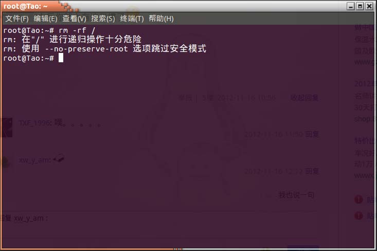 這個在論壇上發(fā)帖的用戶叫“9233”,他在帖子中說:“今天我和我的朋友在一臺MSI筆記本上運行了rm -rf -no-preserve-root命令,因為我們想解決Arch安裝膨脹的問題。當(dāng)然我們也可以格式化根分區(qū),然后重新安裝Arch。”(后面他提了一句說,instead we thought it would be fun seeing the GNOME installation die…)