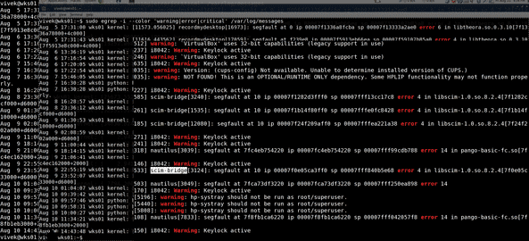 $ egrep -wi --color 'warning|error|critical' /var/log/messages