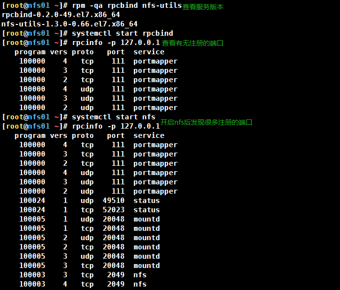 2.啟動NFS服務(同時向RPC服務注冊啟動的端口)