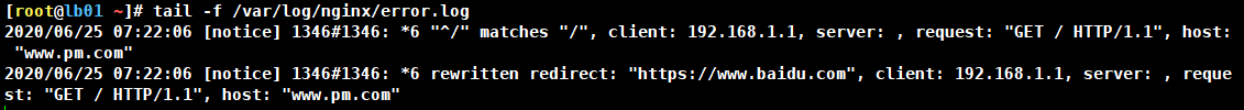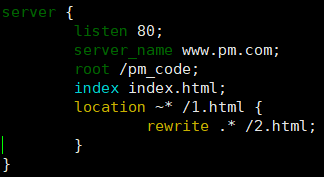 注:^/意思為以根(這里根目錄為/pm_code,對應(yīng)域名為www.pm.com)開頭的url都會(huì)重定向到百度。