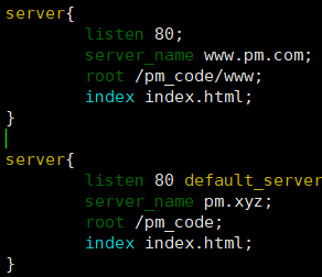①server_name和www.pm.com完全相同的區(qū)塊。