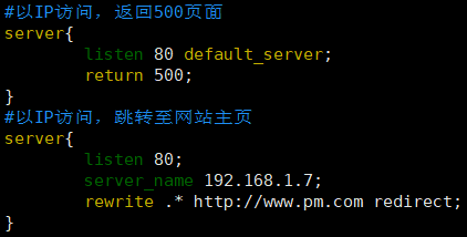 注:第一種方法必須使用 default_server,如果別的地方要用default_server,可以用第二種方法的形式。