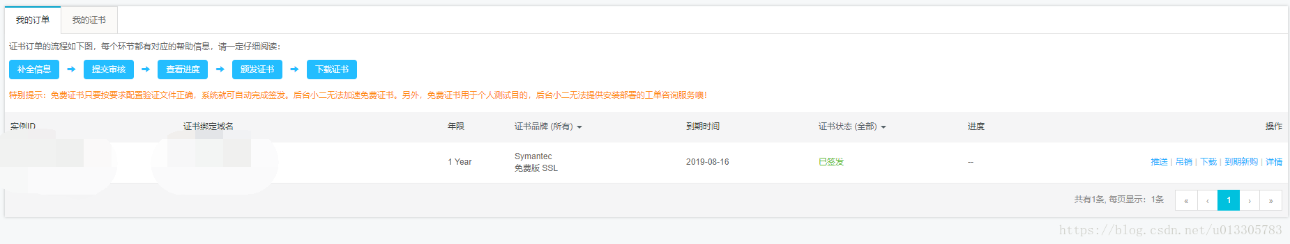 2.購買ssl證書之后去證書控制臺,這個時候需要補全資料,補全之后等待審核,一般只需幾分鐘就能審核通過。