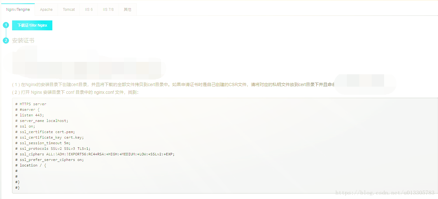 4.然后需要去所在服務器上配置key和pem,當然我們這里選擇的是自動生成key,如果有必要可以自己去制作key,按照阿里云上的步驟操作就是了。如下所示: