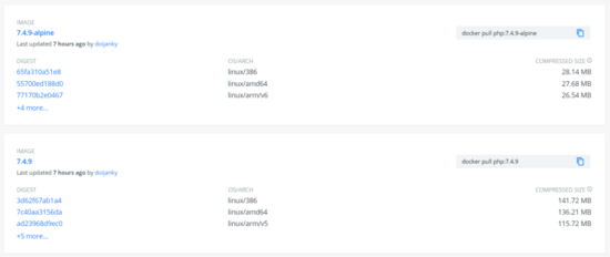 不少Docker官方鏡像都有Alpine版本,比如PHP: