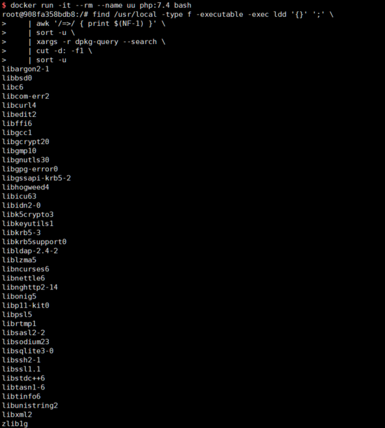 當(dāng)然有,比較簡單的辦法是,我們遍歷剛編譯的可執(zhí)行文件,使用ldd命令列出其依賴的共享鏈接庫文件名,并在源中搜索這個文件名對應(yīng)的包名: