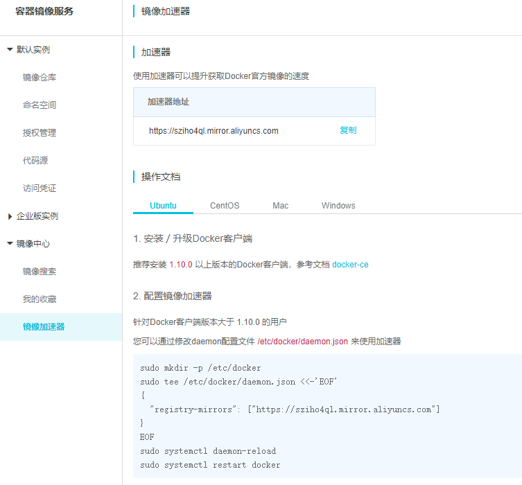 "registry-mirrors": ["https://sziho4ql.mirror.aliyuncs.com"]
