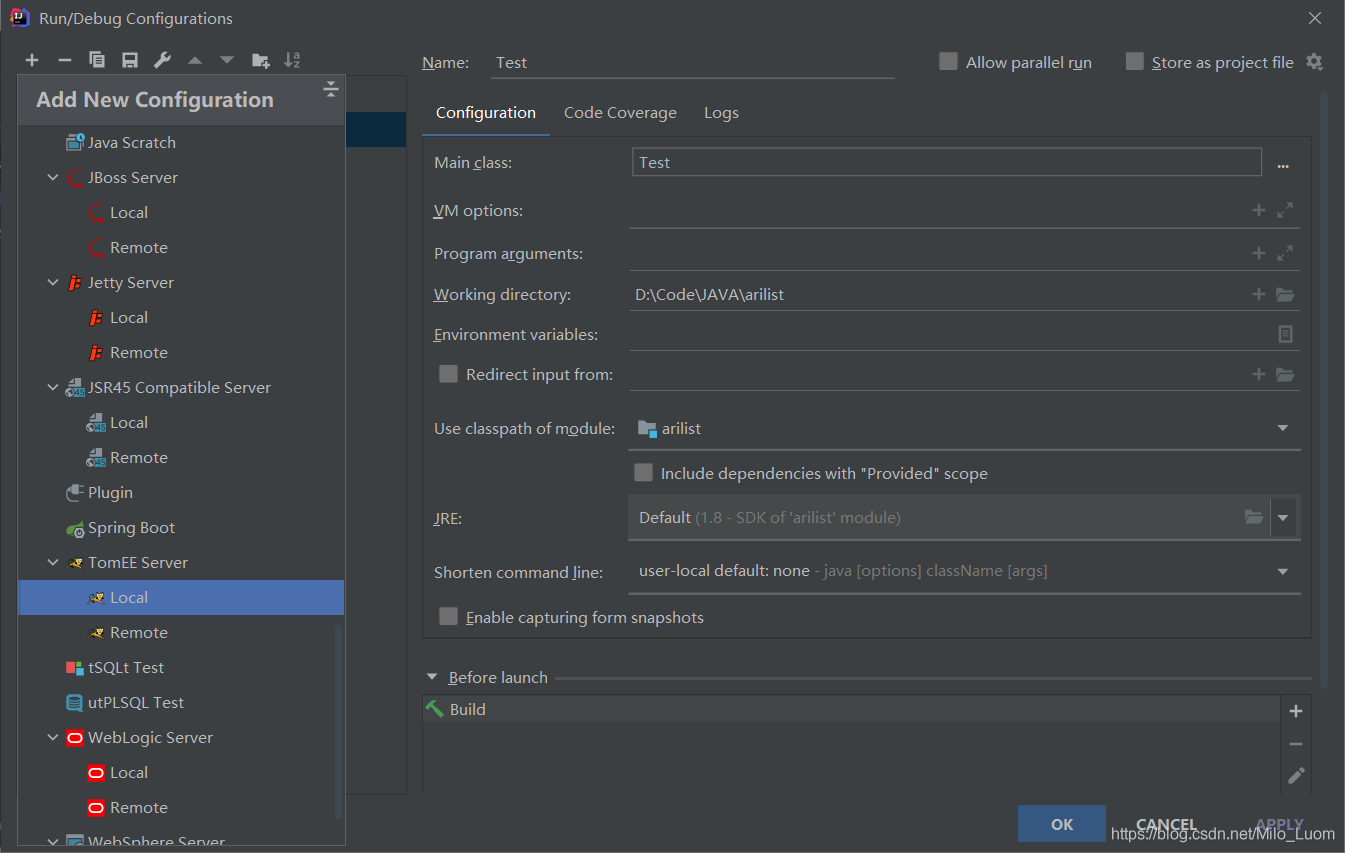 8、點(diǎn)擊+號(hào),選擇Tomcat Server” – “Local”