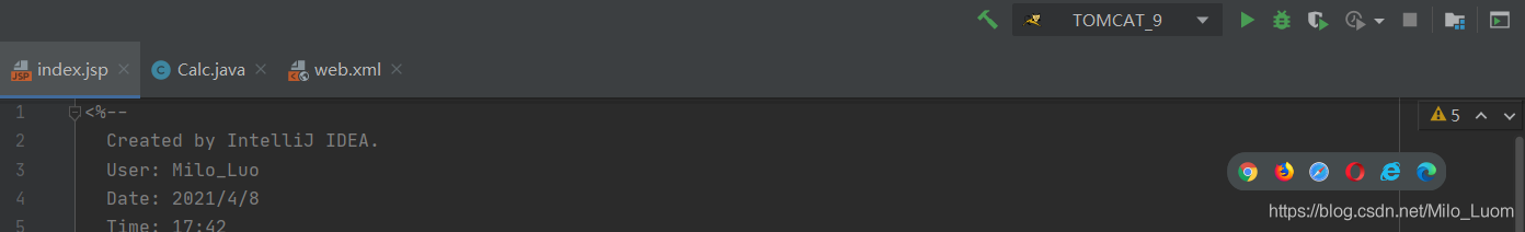 點(diǎn)擊運(yùn)行,然后再index.jsp頁(yè)面選擇瀏覽器打開頁(yè)面